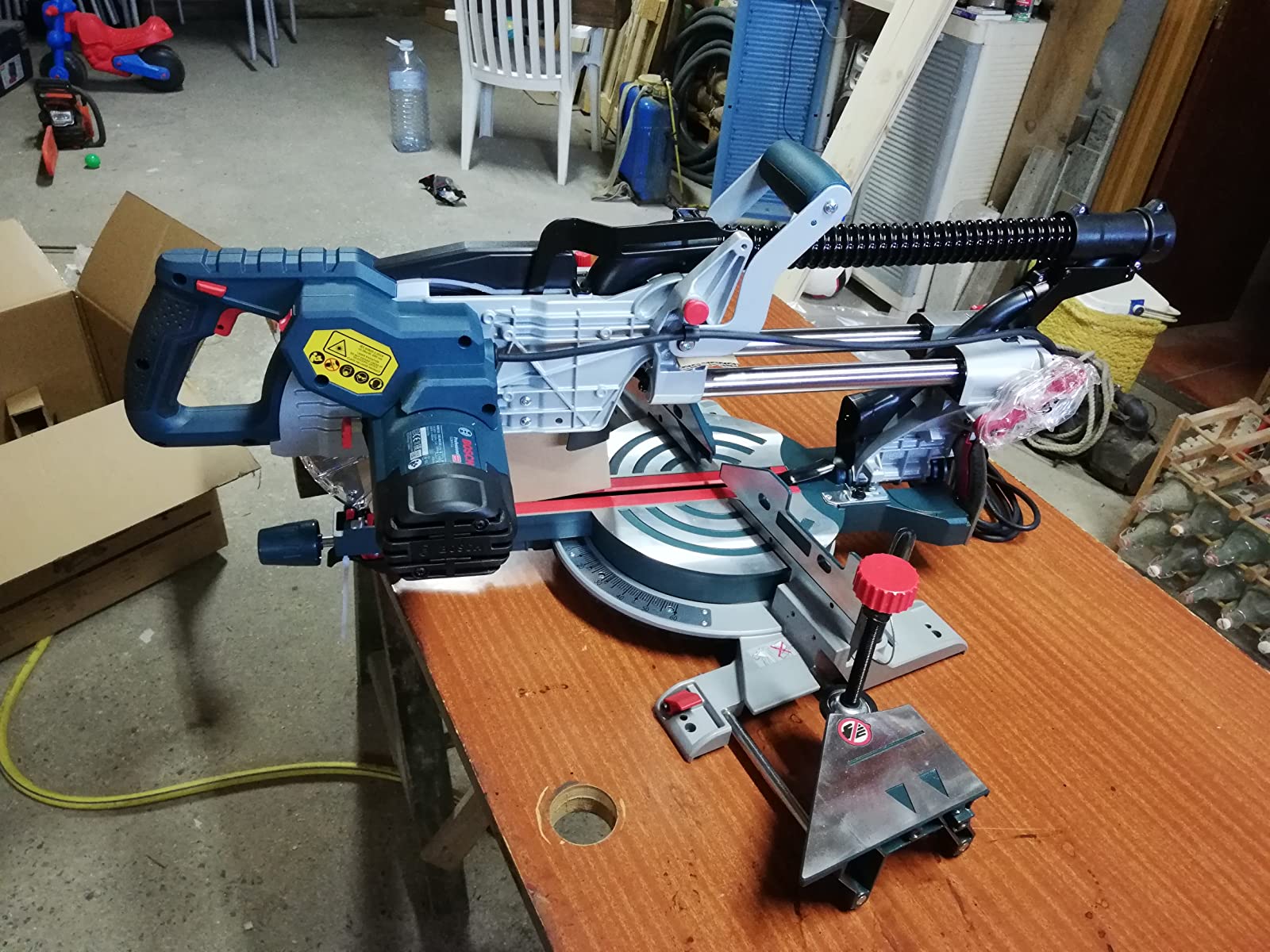 La GCM 8 SJL Professional está diseñada para el corte transversal, el biselado y el ranurado de madera, vigas de madera y compuestos de madera, así como materiales de tablones y paneles para pisos. Es compatible con el sistema de aspiración Click & Clean de Bosch y varios soportes.